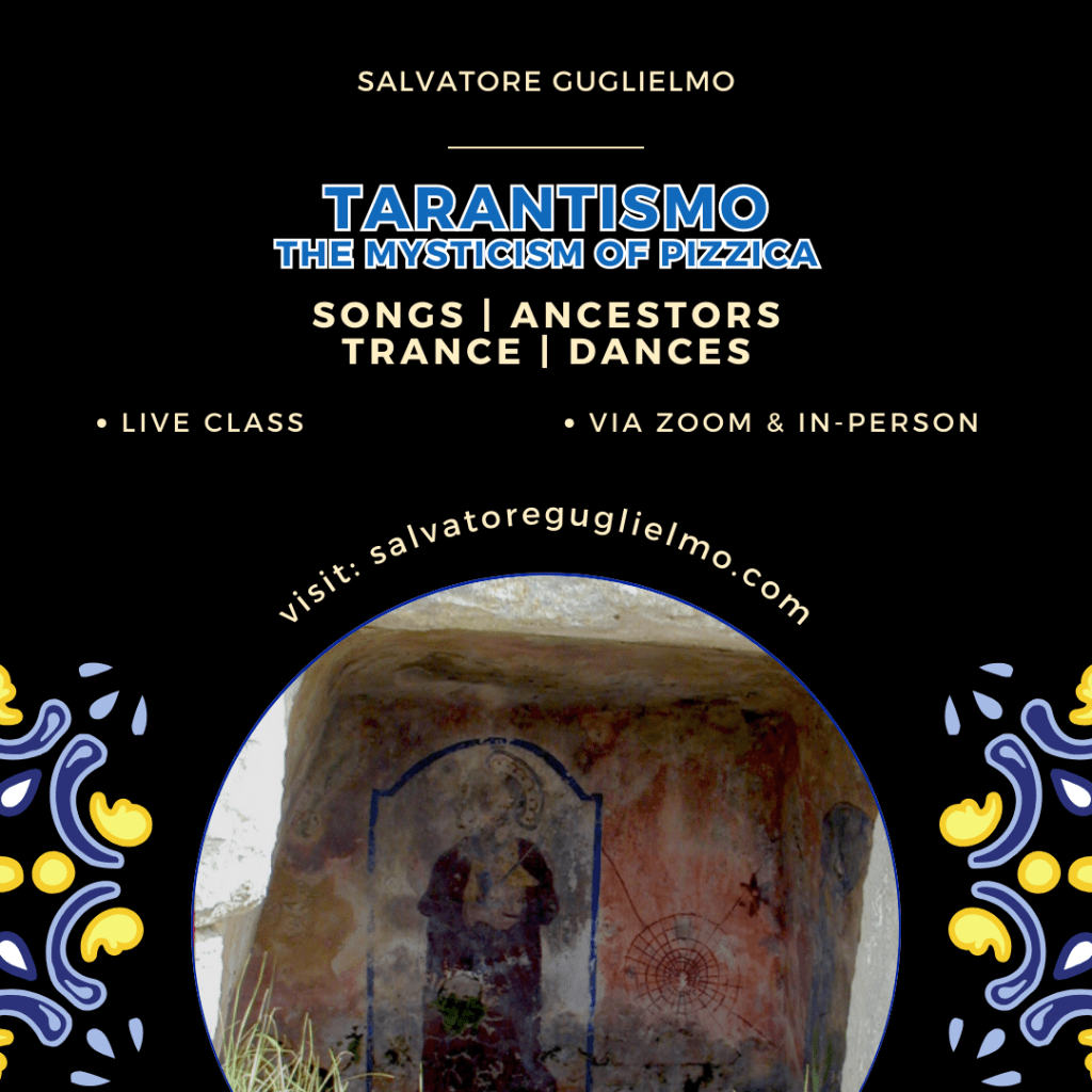 This is a deep dive into the spiritual side of Pizzica. We will explore the relation to color theory and emotion, the totemic animal ancestors known as Tarante and how they go beyond the spider, snake and scorpion.