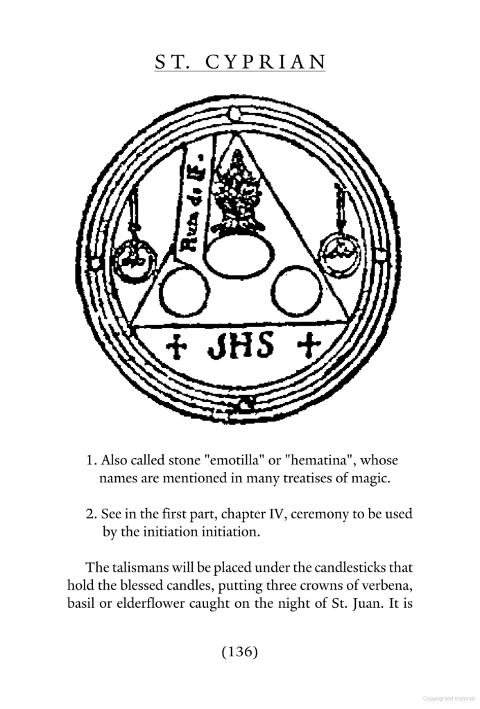(From the Grimoire of Saint Cyprian, created in the 19th century from a Medieval lineage of source work.)