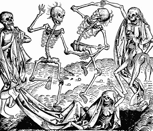 In Egypt, for example, mourners often wore their breasts exposed to symbolize rebirth, as the breast was associated with breast milk and, therefore, life. Over the centuries, these dances lost their true meaning and thus merged with the medieval tradition of the “danse macabre,” depicted in many churches, some cemeteries, and the “wild hunt” of witches. The protagonist is Death, who, playing the flute, carries away the dead, an image later interpreted as a symbol of the Black Lady’s democratic nature.